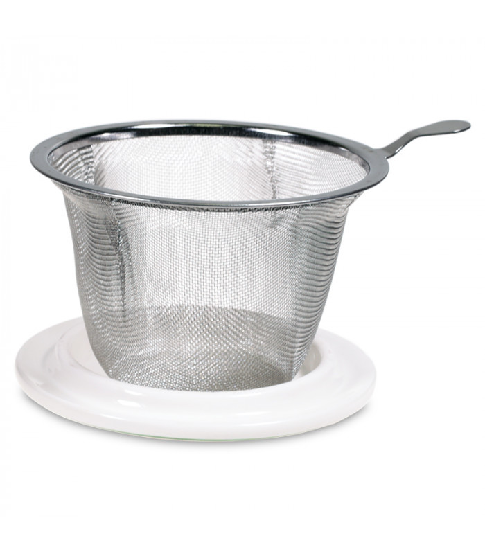Kolorowy kubek do herbaty z pokrywką i zaparzaczem ze stali nierdzewnej, zapakowany w kartonowe pudełko upominkowe.