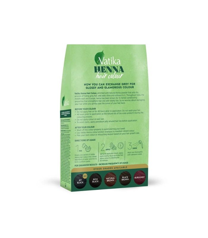 Ziołowa farba do wlosów Vatika zawiera ekstarkty, które pomagają odżywić włosy