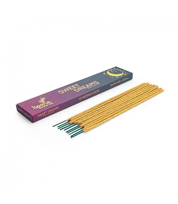 Aromat kadzideł Sweet Dreams tworzy relaksującą atmosferę, która wywołuje spokój w umyśle i sercu. Napar z ziół leczniczych, lawendy, wanilii i Palo Santo oczyszcza energię z niskich wibracji, aby przyciągnąć spokój.