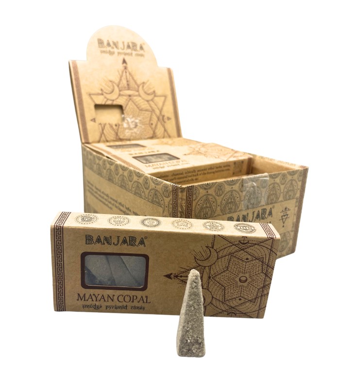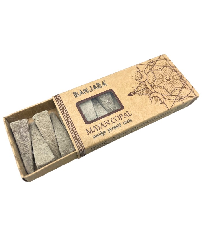 Odkryj moc piramidy z kadzidełkami stożkowymi Banjara Smudge Pyramid Cones – Mayan Copal. To wyjątkowa forma kadzidła inspirowana energią piramidy, która pomaga stworzyć harmonijną atmosferę i wprowadza do wnętrza kojący, duchowy klimat.