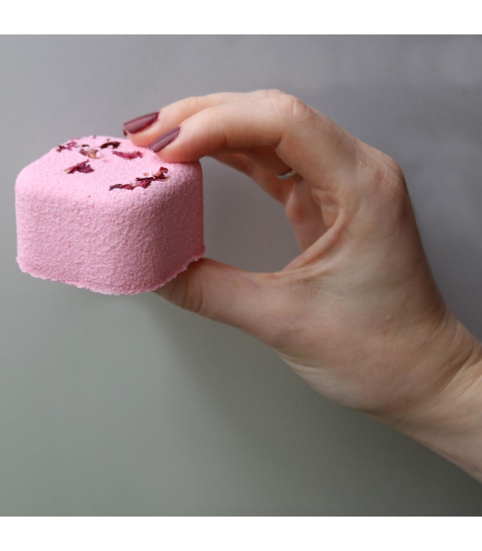 Składniki / Ingredients / INCI: Sodium Bicarbonate, Citric Acid, Zea Mays Starch, Aqua, Rosa Centifolia Petals, Pogostemon Cablin Oil, Cananga Odorata Oil, Jasminum Grandiflorum Oil, Maranta Arundinacea Root, Benzyl Benzoate, Benzyl Salicylate, CI 18050, CI 16255