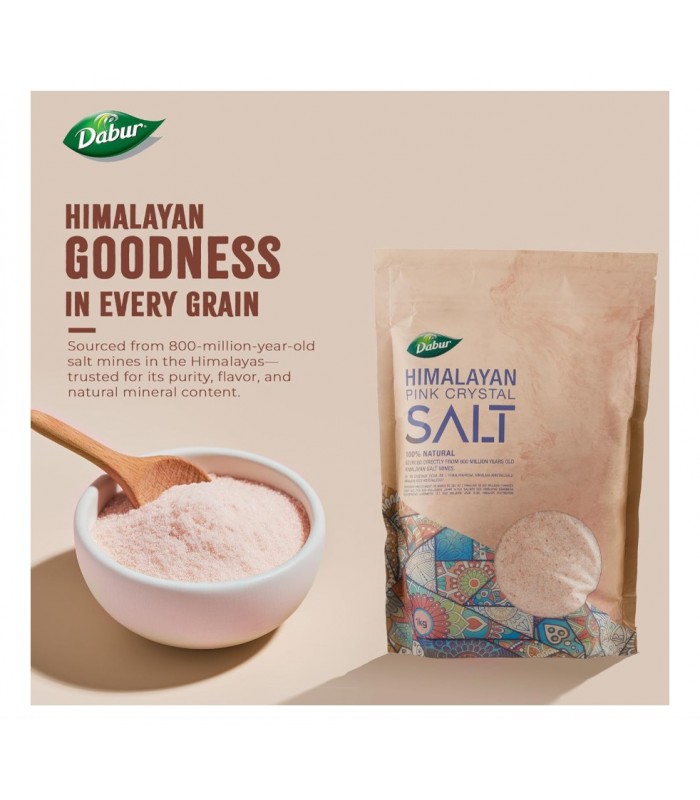 Odkryj naturalną różową sól himalajską Dabur — czysta, nierafinowana alternatywa dla zwykłej soli, która wzbogaci smak potraw i dostarczy organizmowi śladowych minerałów.