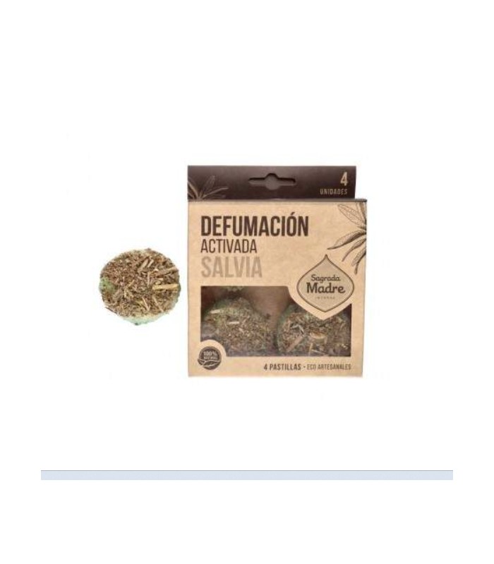 Tabletki defumacyjne Sagrada Madre – Biała szałwia (4 szt.). Wygodne, gotowe do użycia tabletki do spalania biała szałwia, idealne do oczyszczania przestrzeni, medytacji i rytuałów. Długie, równomierne palenie i intensywny, ziołowy aromat dla harmonii i wyciszenia.