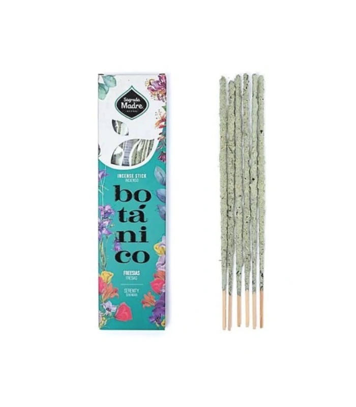 Delikatne kadzidełka botaniczne Sagrada Madre o świeżym, kwiatowym aromacie frezji. Wykonane ze składników roślinnych, idealne do relaksu, medytacji i odświeżenia wnętrz — pozostawiają subtelny, długotrwały zapach. Naturalny wybór dla miłośników łagodnych, kwiatowych nut.