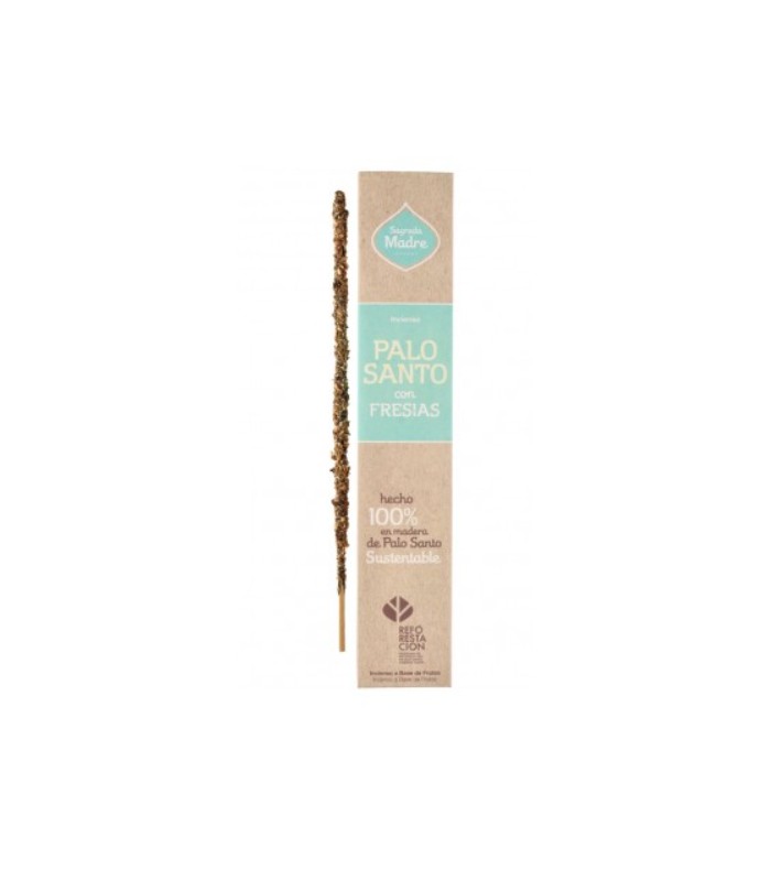 Kadzidełka Sagrade Madre - Palo Santo z frezjami. Połączenie oczyszczającego, drzewno-cytrusowego Palo Santo z delikatną, słodką nutą frezji — tworzy kojący, świeży aromat idealny do medytacji, relaksu i oczyszczania przestrzeni. Ręcznie wykonane, długie i równomierne palenie.
