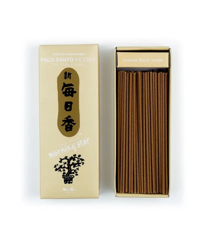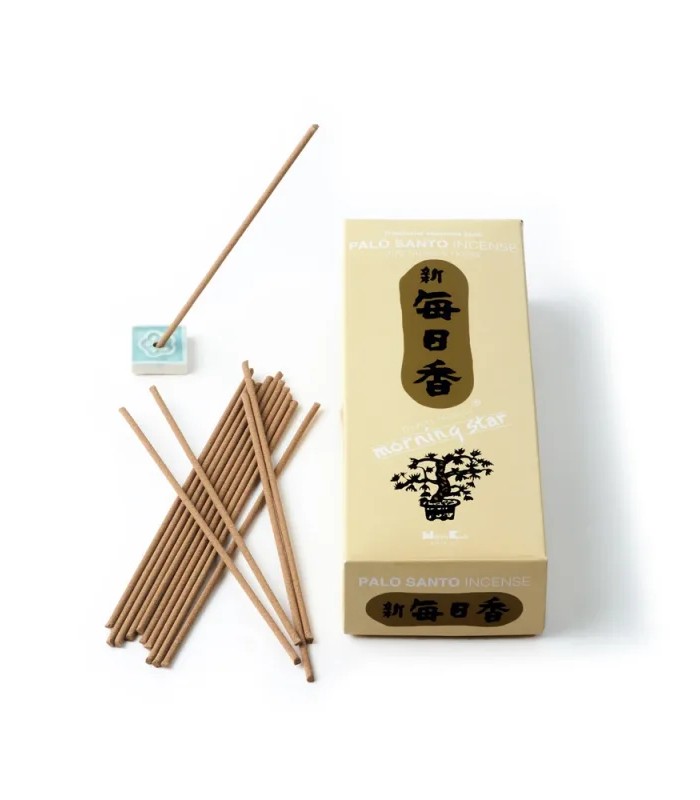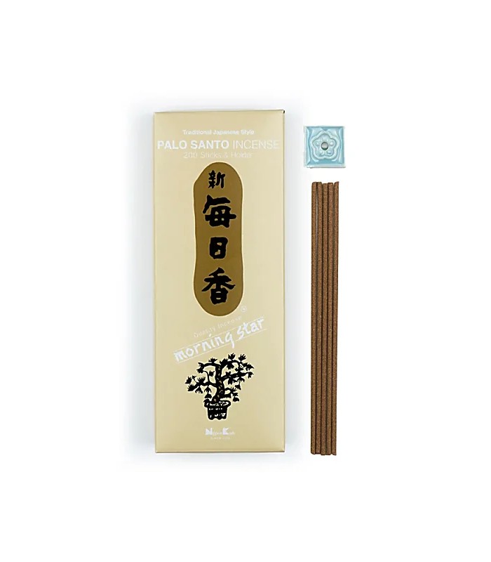 Morning Star incense box with 200 sticks and a ceramic incense holder. Morning Star has been a Japanese incense bestseller since the 1960s, and is one of the most popular incenses for everyday use. Natural, non-toxic incense, without a bamboo core, so no smell of wood when burning this incense.