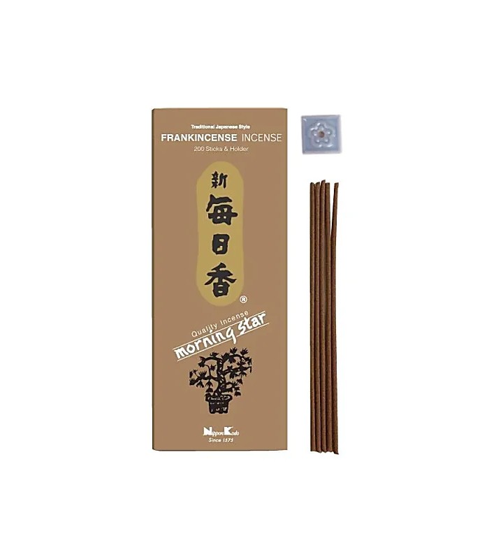 Morning Star incense box with 200 sticks and a ceramic incense holder. Morning Star has been a Japanese incense bestseller since the 1960s, and is one of the most popular incenses for everyday use. Natural, non-toxic incense, without a bamboo core, so no smell of wood when burning this incense.