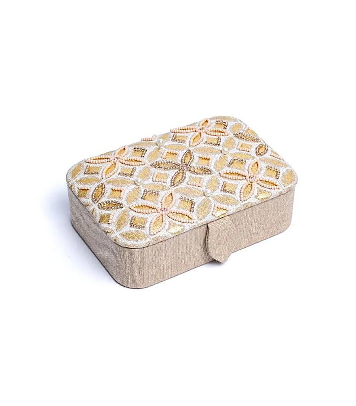Jewellery/tarot box with fine embroidery and ornamental beads.