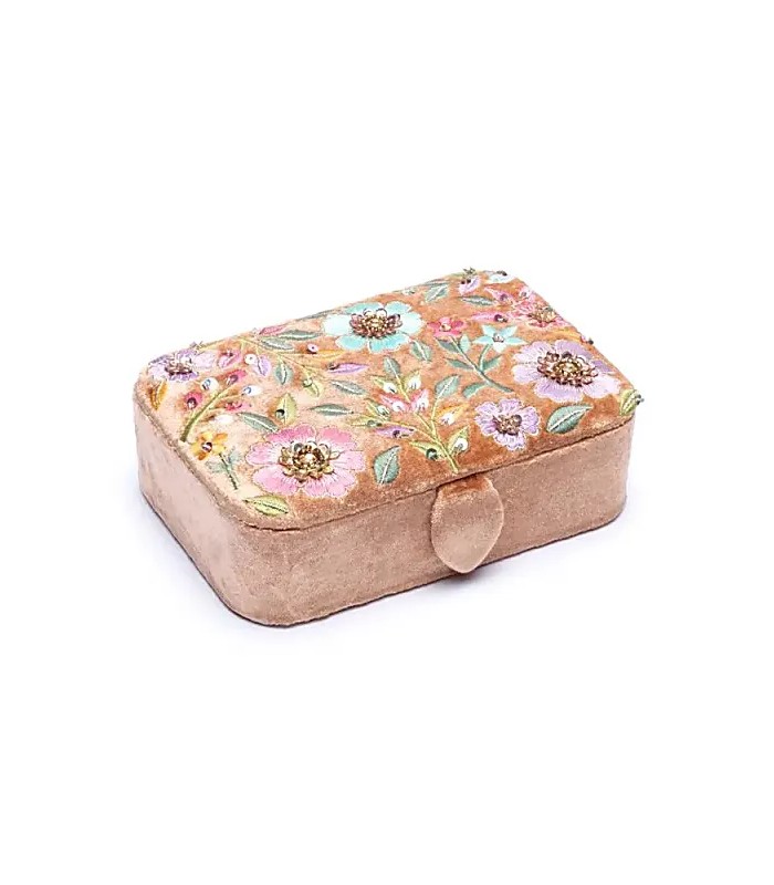 These boxes feature a soft velvet exterior with intricate embroidery, making them a beautiful and functional piece for storing small treasures. The rich colours and refined details give them a unique presence in any collection.