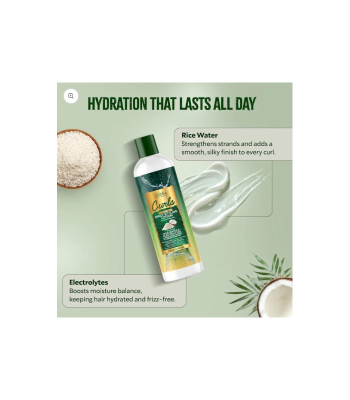 Stworzony specjalnie z myślą o włosach kręconych, falowanych i o wyrazistej strukturze. Dzięki zawartości wody ryżowej i elektrolitów zapewnia głębokie nawilżenie, jednocześnie zatrzymując wilgoć, co pozwala uzyskać gładkie loki bez puszenia się.