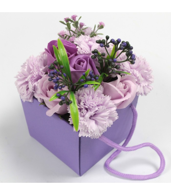 Bukiet prezentuje się niezwykle efektownie – kwiaty wyglądają niemal jak prawdziwe. Całość została artystycznie ułożona i zapakowana w ozdobną torebkę prezentową, dzięki czemu doskonale sprawdzi się jako upominek na wiele okazji.