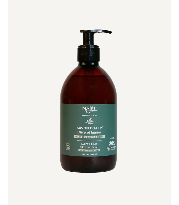 Płynne mydło Aleppo w 20% złożone z olejku laurowego. Doskonałe do codziennego stosowania dla wrażliwej skóry i mycia włosów dla całej rodziny.