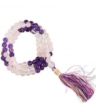 Materiał: 36 koralików Ametystowych, 36 koralików Kryształu Górskiego, 36 koralików Kwarcu Różowego.