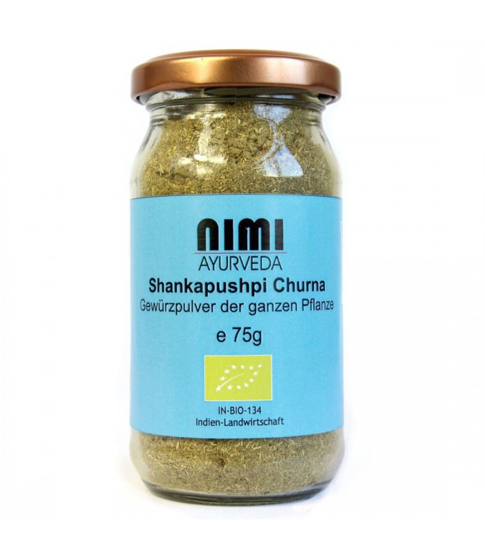 Organiczna Churna Shankapushpi Nimi Ayurveda ma wysoką czystość, ma przetestowaną laboratoryjnie jakość i składa się tylko z części roślin wyszczególnionych w oryginalnych pismach ajurwedyjskich. Jest przetwarzana i produkowana zgodnie z wytycznymi ajurwedyjskimi.