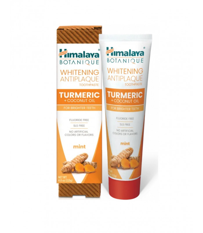Wybielająca Pasta do zębów Himalaya Botanique przeciwdziałająca osadzaniu się płytki nazębnej powstała w oparciu o siłę działania Kurkumy, odświeżającą moc Mięty oraz kojące właściwości Oleju Kokosowego. Daje efekt oczyszczającego odświeżenia.