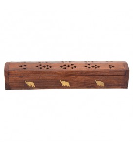 Podstawka na kadzidełka i rożki z drewna mango z motywem Kwiatu Życia szer 10 cm