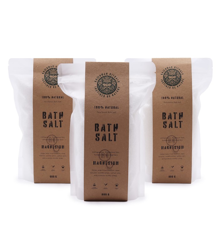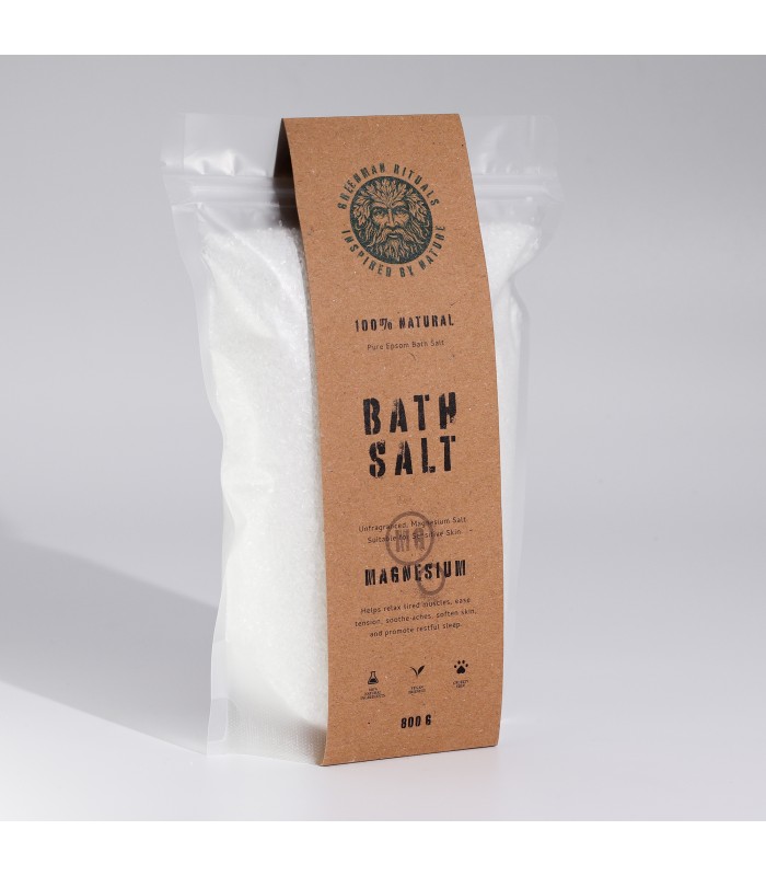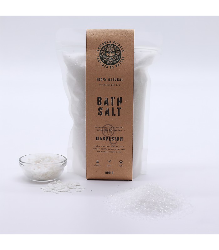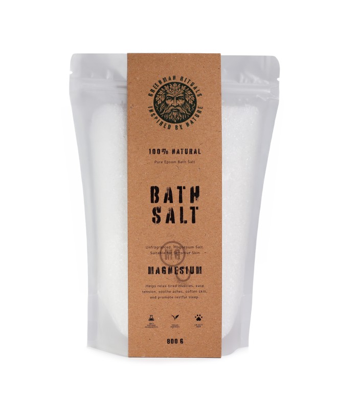Greenman Rituals Magnesium Epsom Bath Salt – Pure Formula to czysta, minimalistyczna formuła oparta na 100% soli Epsom. Bez dodatku barwników, olejków i substancji zapachowych. Dzięki temu jest doskonałym rozwiązaniem dla osób, które szukają naturalnego produktu do kąpieli – szczególnie przy skórze wrażliwej lub gdy preferujesz kosmetyki bezzapachowe.