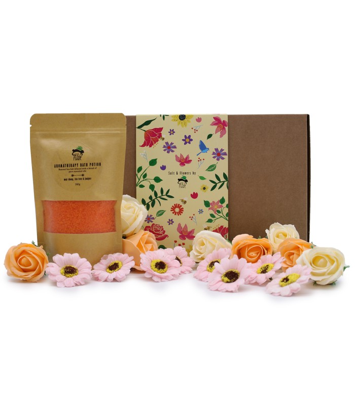 Połączenie naturalnej soli i aromatycznych olejków eterycznych zapewnia przyjemne doznania aromaterapeutyczne. Zapach pomaga się odprężyć, wyciszyć i zadbać o dobre samopoczucie. Delikatne płatki kwiatów mydlanych rozpuszczają się w ciepłej wodzie, dodając kąpieli odrobiny elegancji i wyjątkowego klimatu.