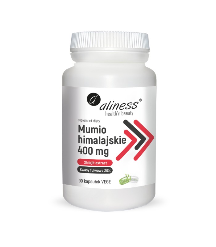 Naturalny ekstrakt Mumio (Shilajit) z Himalajów — 400 mg w kapsułce, 90 kapsułek wegańskich. Bogate źródło minerałów i kwasów fulwowych, może wspierać poziom energii, regenerację organizmu i naturalną odporność.