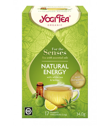 Naturalna Energia Yogi Tea z olejkiem bergamotowym i cytrynowym oraz wysokiej jakości białą i zieloną herbatą jest idealnym towarzyszem dnia pełnego wigoru.
